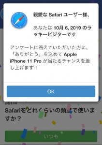 サイトを見ていて、いきなりビジターアンケートが実施されるというのもおかしな話ですし、景品が当たるというのも、話がうますぎます。